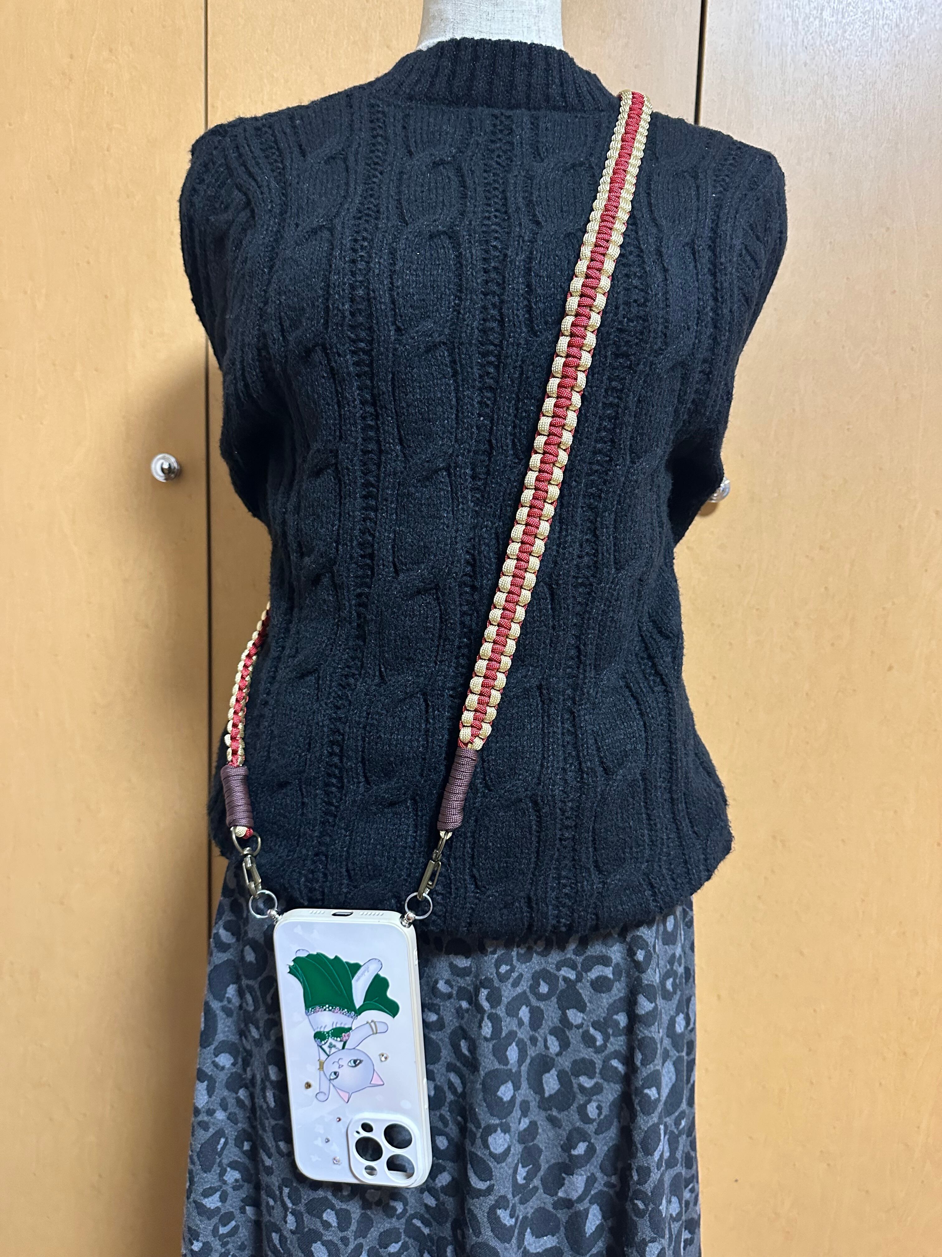 【ハンドメイド】スマホショルダー/ワイン&ゴールド
